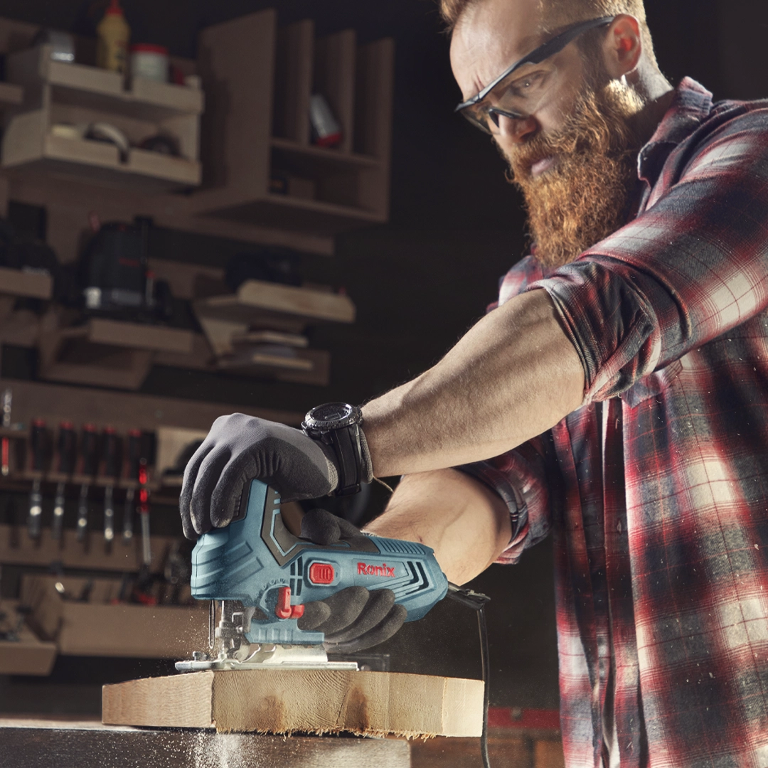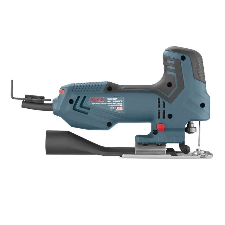 ‘- مجهز به موتور قدرتمند 550 وات با قابلیت برش تا عمق 65 میلیمتر در چوب و 6 میلیمتر در فلز