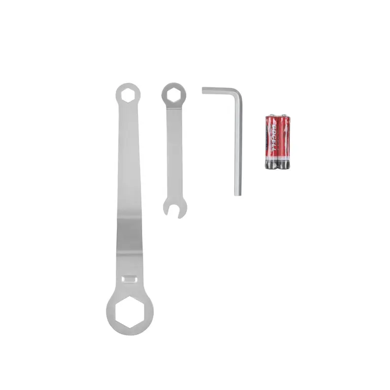 "یک عدد دستگاه با نور لیزر سه عدد آچار یک عدد نقاله یک عدد گونیا یک عدد میله راهنما" |