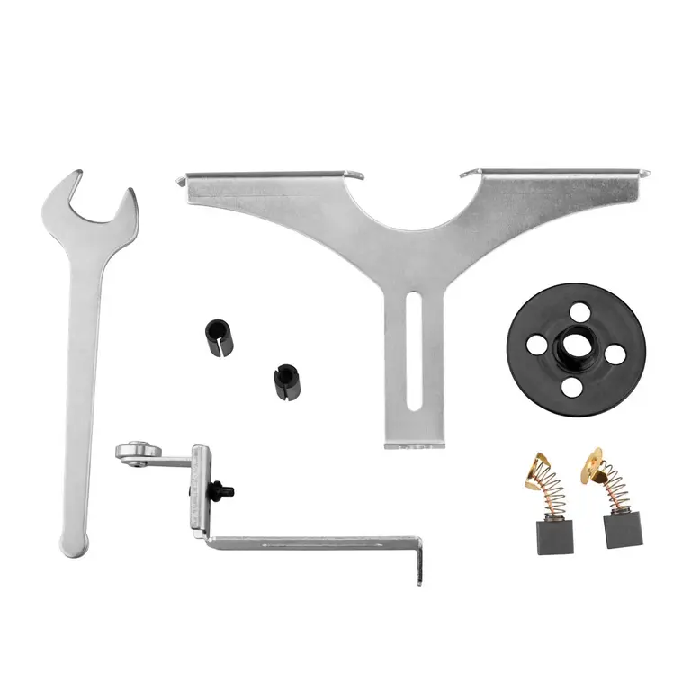 ارائهشده در جعبه رنگی رونیکس همراه با 2 عدد کولت در سایزهای 6 و 8 میلیمتر؛ آچار؛ روکش محافظ غبار؛ گونیا؛ ذغال؛ راهنمای الگوی برش؛ راهنمای لبهگیری؛ نگهدارنده گونیا (ثابت روی دستگاه) آچار 24 میلیمتری