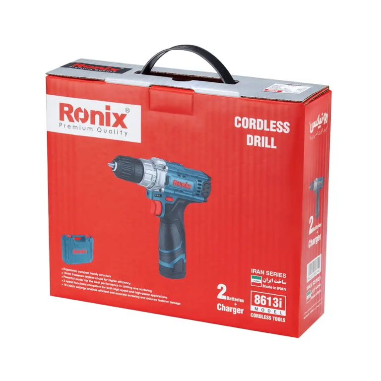 دریل پیچ گوشتی شارژی 12 ولت رونیکس مدل 8613i یکی از محصولات ساخت ایران شرکت رونیکس است که با طراحی ارگونومیک و عملکرد قدرتمند،