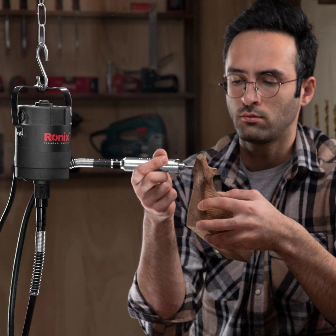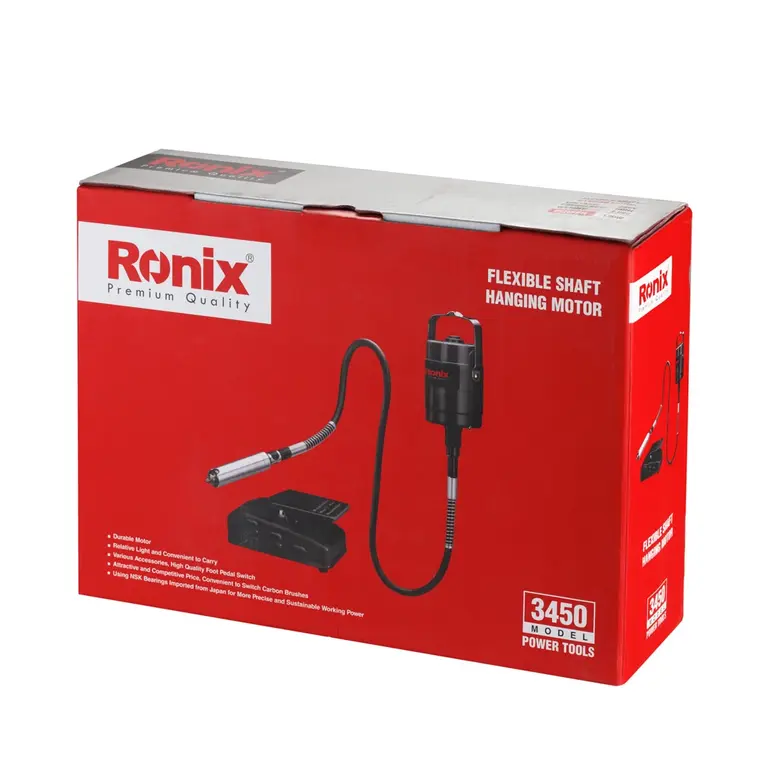 طراحی ارگونومیک و اندازه‌ی کوچک فرز 3450 رونیکس، جابه‌جایی آن را برای کاربران آسان‌تر می‌کند. می‎‌توان سه نظام این ابزار را مانند قلم در دست گرفت و با آن روی سطوح مختلف حکاکی کرد. پدال پایی نیز موجب سهولت کنترل سرعت و خاموش/ روشن‌کردن ابزار می‌شود. کاربران با استفاده از این پدال، به خاطر تسلط بیشتر با دستان آزاد خود، قدرت مانور بیشتری روی قطعه‌ی کار خواهند داشت. شلنگ خرطومی سه ‌نظام‌دار و قلاب قابل نصب روی دیوار یا سقف از دیگر مزایای مهم فرز مینیاتوری پدالی سه نظام‌دار 120 وات رونیکس با مدل 3450 هستند.