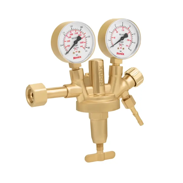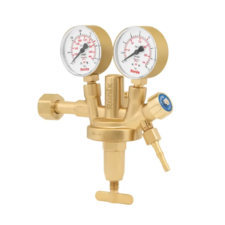 مانومتر اکسیژن رونیکس مدل RH-4504 ابزاری دقیق و کاربردی برای کنترل و تنظیم فشار گاز اکسیژن است. این مانومتر با طراحی حرفهای و نشانگرهای دقیق، امکان مدیریت فشار را در صنایع مختلف بهویژه جوشکاری و پزشکی فراهم میکند.